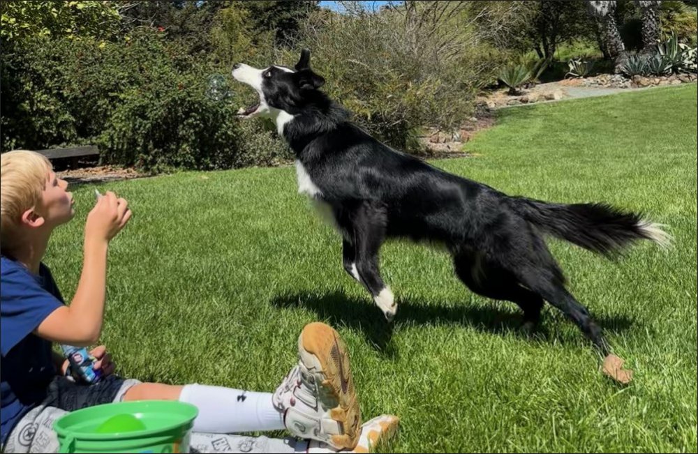 bubbles and his dog's newly discovered talent of catching them. They had no idea he was so athletic! Be sure to